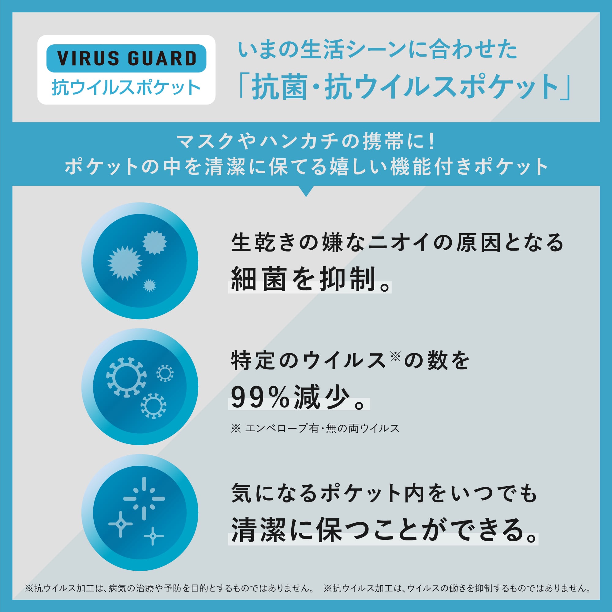 別口に抗ウイルスポケット「VIRUS GUARD」付き。