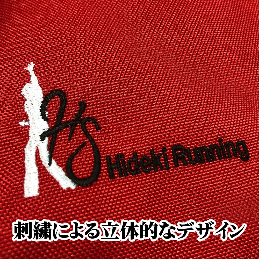 Hideki Runningのロゴは刺繍デザイン。刺繍の立体的なロゴがオシャレなポーチです♪