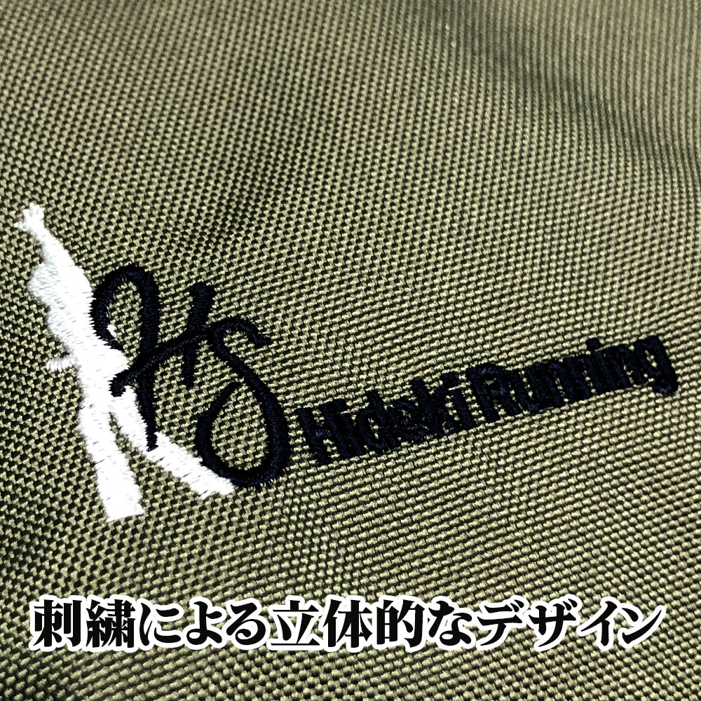 Hideki Runningのロゴは刺繍デザイン。刺繍の立体的なロゴがオシャレなポーチです♪